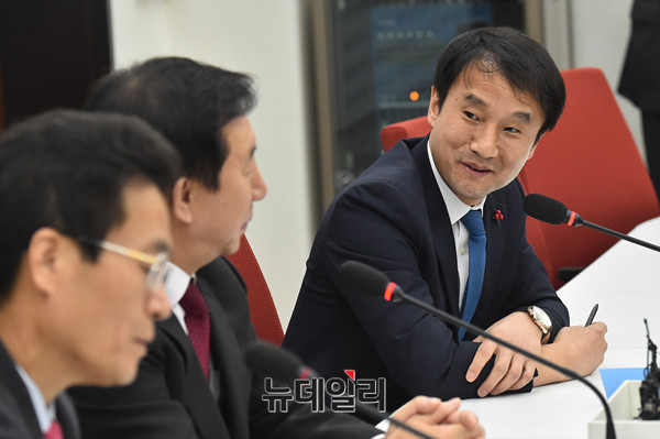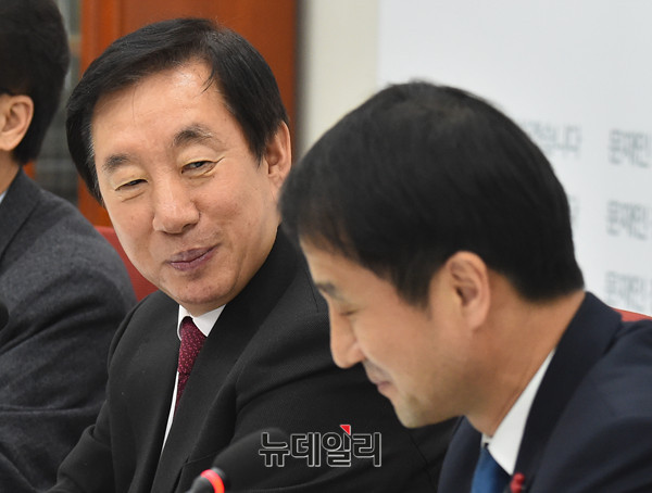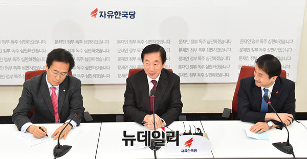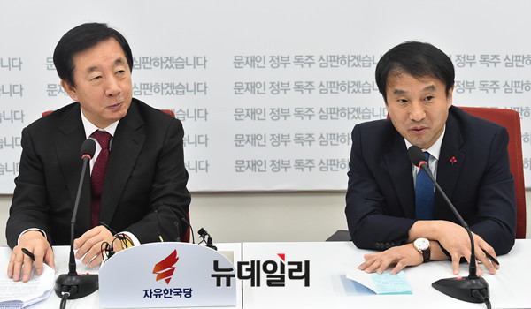 김성태 자유한국당 신임 원내대표가 13일 오후 국회 원내대표실에서 예방온 청와대 한병도 정무수석을 만나고 있다.