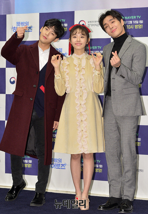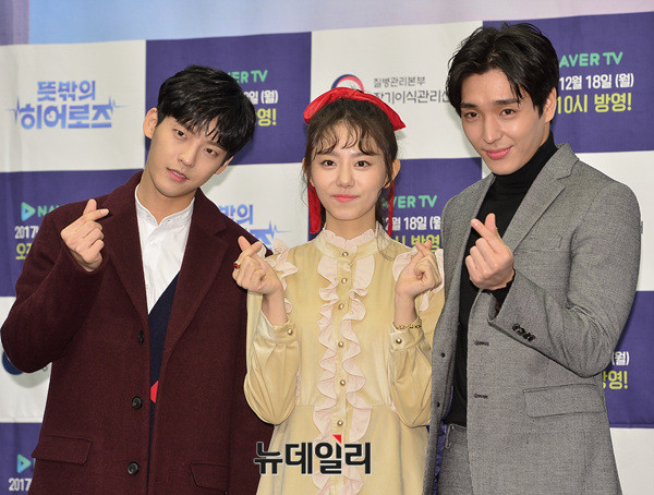 배우 최종훈, 김소혜, 이민혁이 13일 오후 서울 마포구 스탠포드호텔에서 열린 '뜻밖의히어로즈' 제작발표회에 참석해 포즈를 취하고 있다.