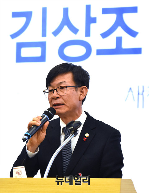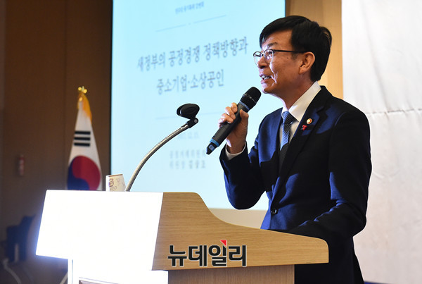 김상조 공정거래위원장이 15일 오전 국회 도서관에서 '새정부의 공정경쟁 정책방향과 중소기업-소상공인'을 주제로 강연을 하고 있다.
