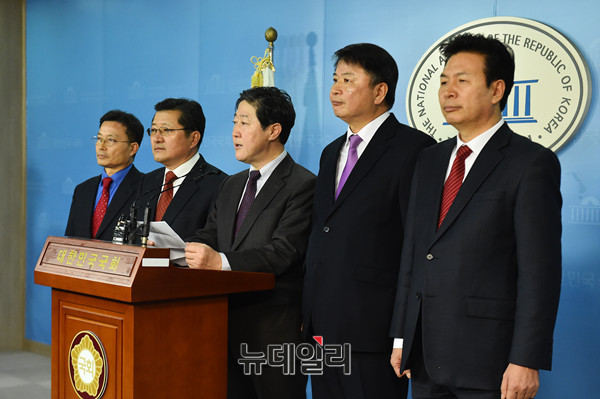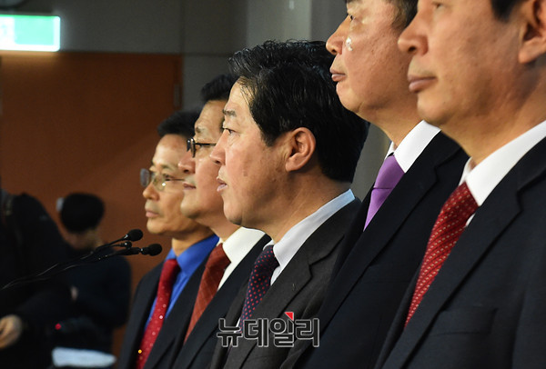 유기준 자유한국당 의원이 18일 오후 국회 정론관에서 당무감사 결과 당협위원장 교체대상이 된 것과 관련해 기자회견을 하고 있다.