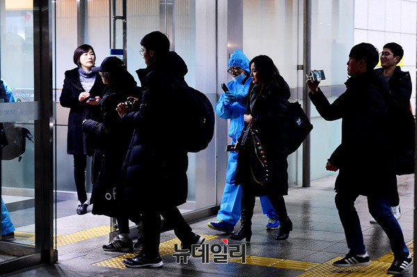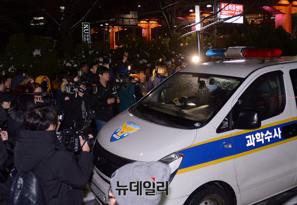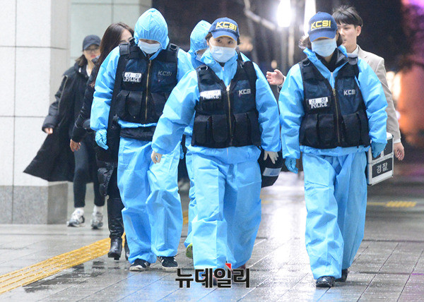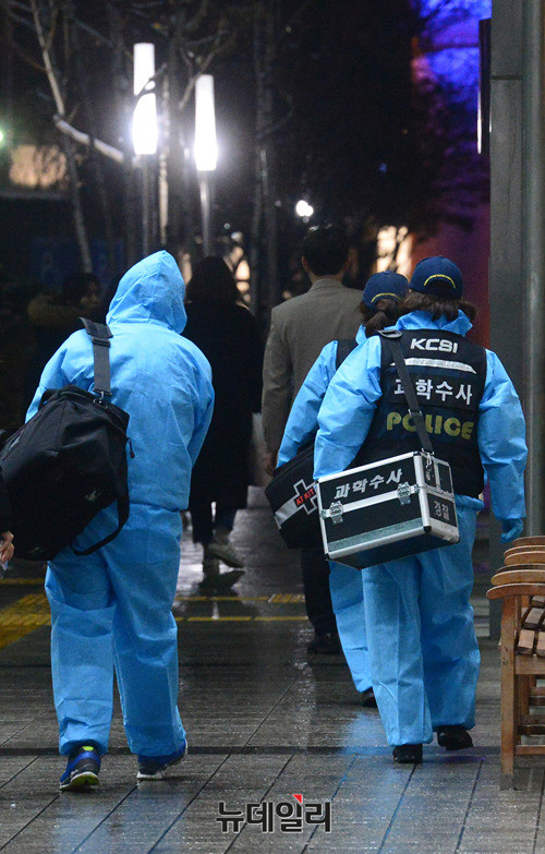 과학수사대 관계자들이 18일 오후 그룹 샤이니의 멤버 종현이 옮겨진 서울 광진구 건국대학교병원 응급실로 향하고 있다.