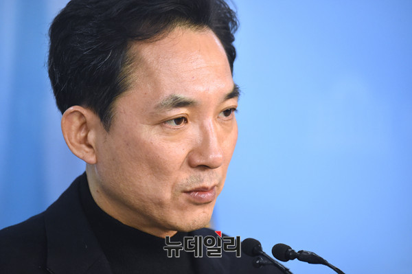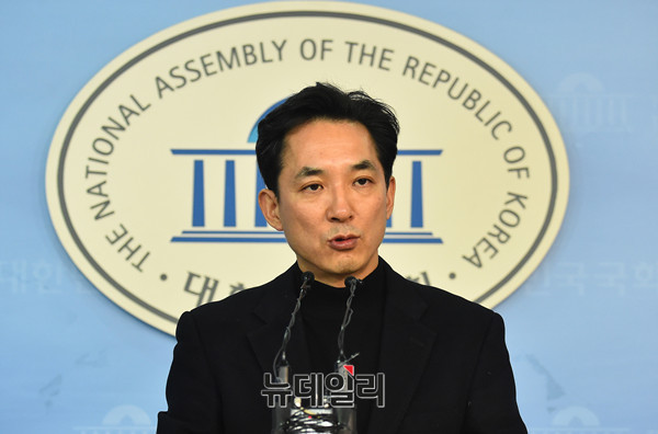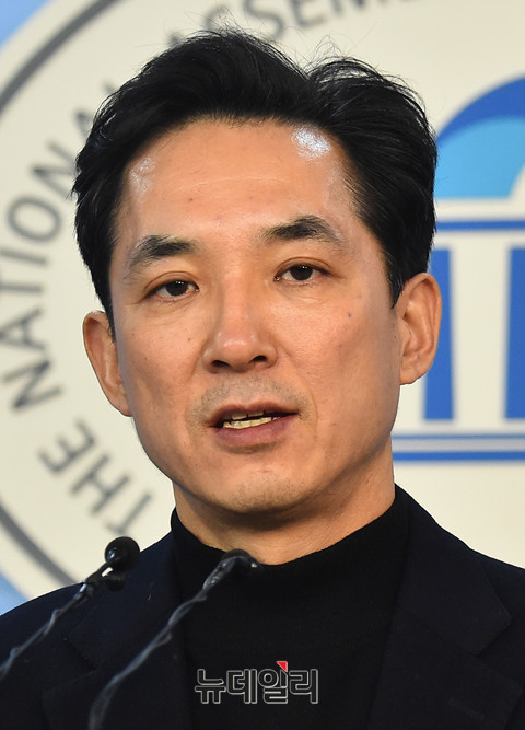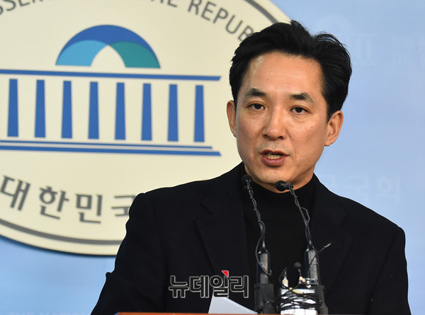 박민식 자유한국당 전 의원이 19일 오전 국회 정론관에서 당무감사 결과 관련 기자회견을 갖고 부당함에 대해 발언하고 있다.