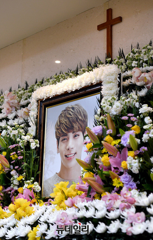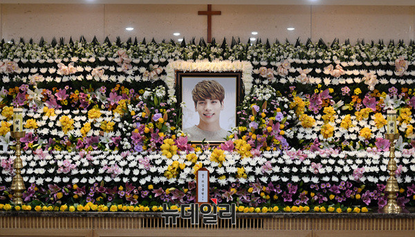 종현은 지난 18일 오후 서울 강남구 청담동의 한 오피스텔에서 쓰러진 채 발견돼 건국대학교 병원 응급실로 이송 후 사망 판정을 받았다. 발인은 오는 21일 오전 9시에 진행된다. 장지는 미정이다. (사진=공동취재단)