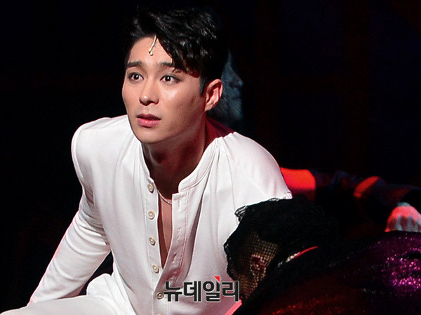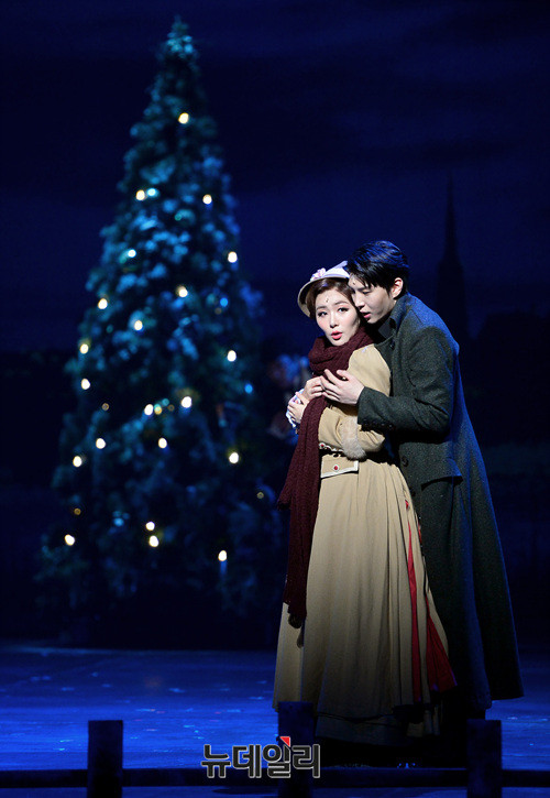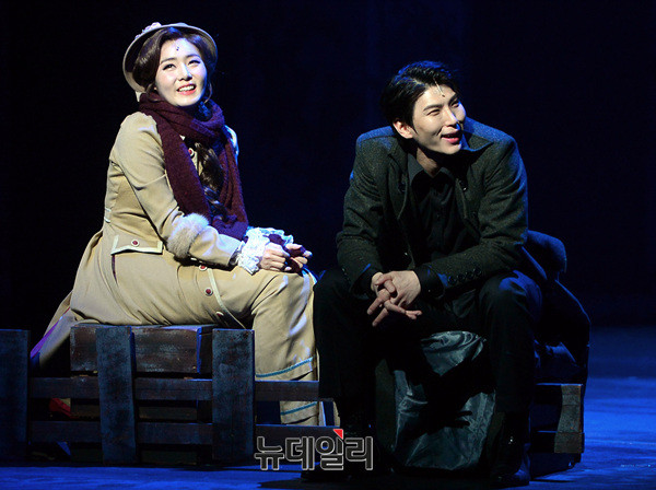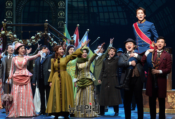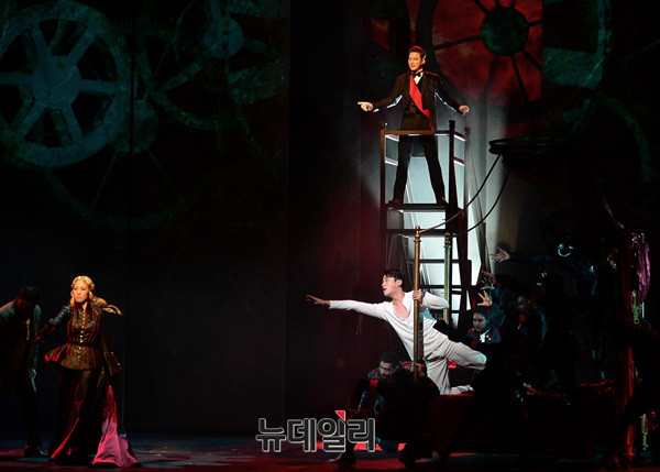 뮤지컬 '더 라스트 키스(The Last Kiss)'의 배우들이 19일 오후 서울 강남구 LG아트센터에서 열린 프레스콜에서 하이라이트 장면을 시연하고 있다.