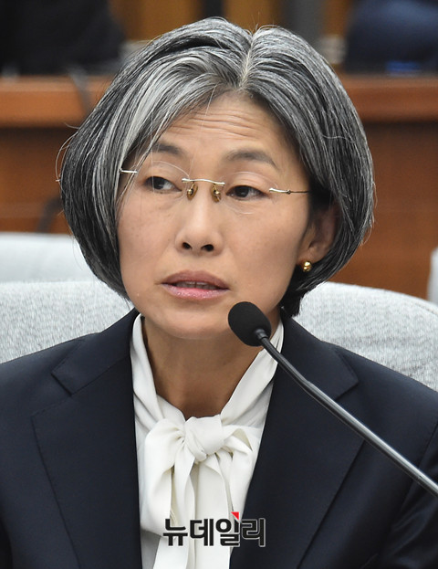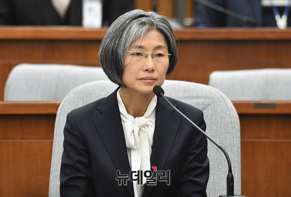 민유숙 대법관 후보자가 20일 오전 국회에서 열린 인사청문회에 출석해 의원들의 질의에 답하고 있다.