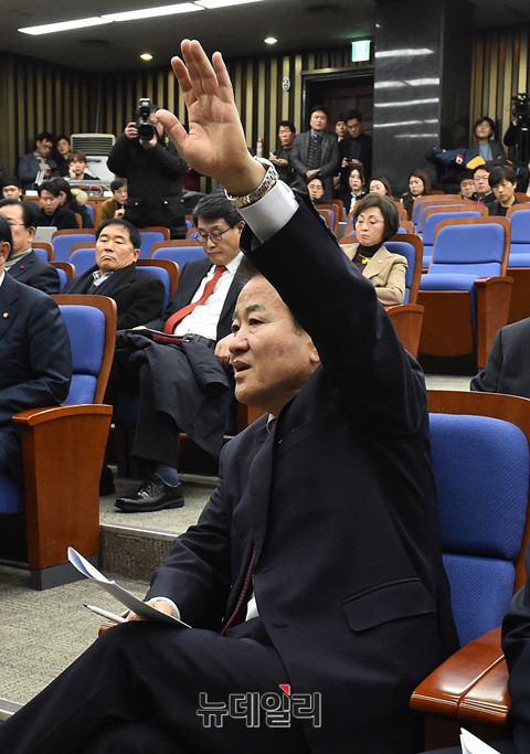 정동영 국민의당 의원이 20일 오후 국회에서 열린 의원총회에서 안철수 대표의 참석을 촉구하고 있다.