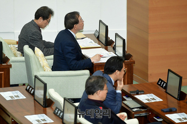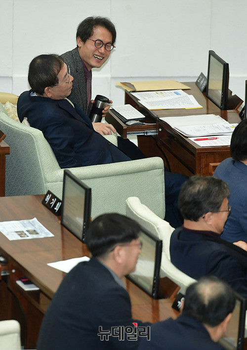 조희연 서울시교육감, 박원순 서울시장이 20일 오후 서울시의회에서 열린 본회의에서 참석해 자리하고 있다.