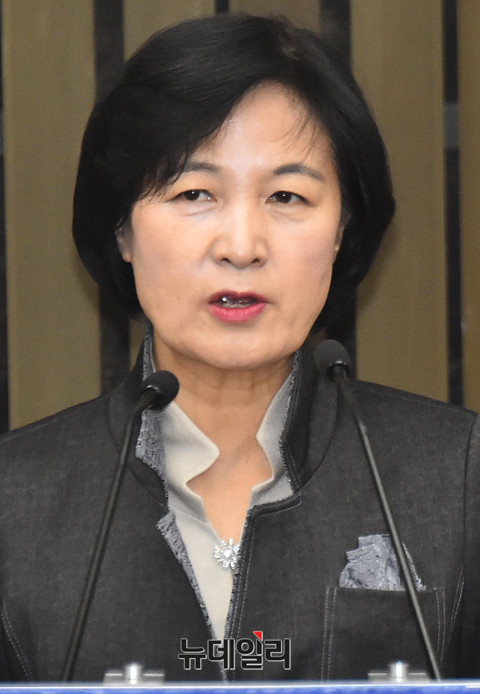 추미애 더불어민주당 대표가 21일 오전 국회에서 열린 개헌 의원총회에서 모두발언을 하고 있다.