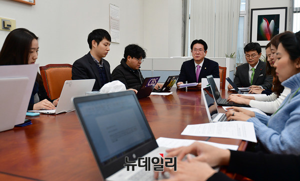 • 이동섭 국민의당 중앙당선거관리위원장이 22일 오전 국회에서 바른정당과 통합 여부 확인을 위한 안철수 당대표의 재신임을 묻는 전당원투표와 관련해 기자간담회를 열고 발언하고 있다.