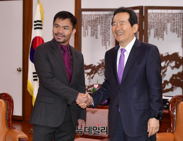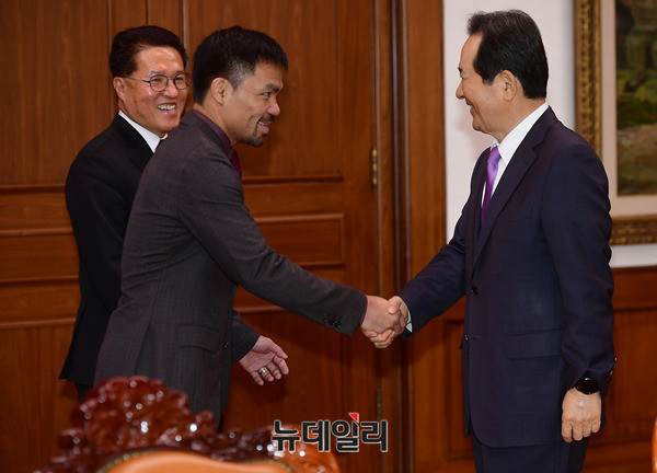 '복싱 영웅' 파퀴아오 의원, 정세균 국회의장과 환담