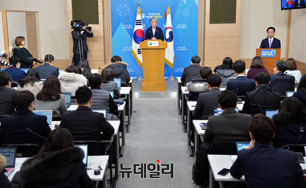강경화 외교부 장관이 26일 오전 외교부 청사에서 열린 브리핑에 참석해 발언하고 있다.