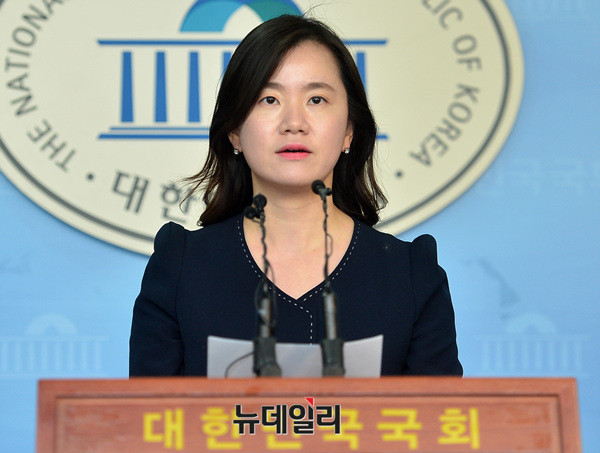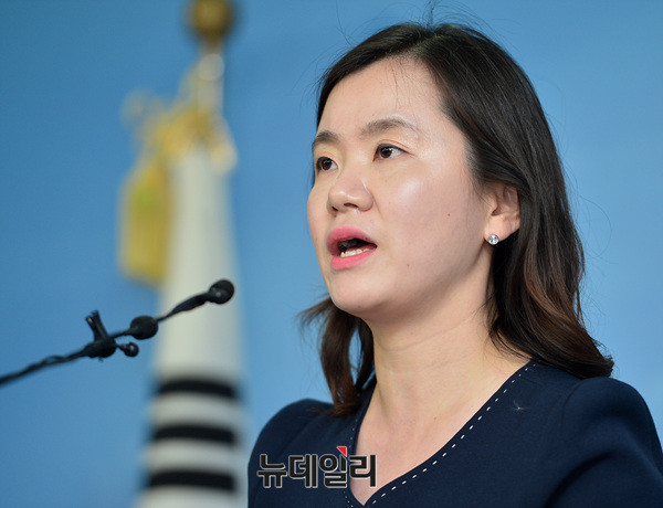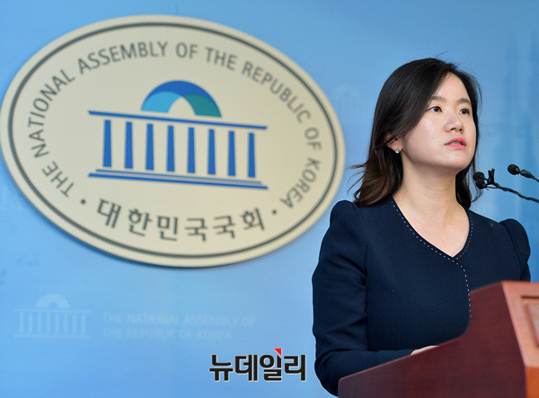 신보라 자유한국당 원내대변인이 26일 오후 국회 정론관에서 기자회견을 하고 있다.