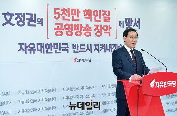 이종혁 자유한국당 최고위원이 28일 오전 서울 여의도 중앙당사에서 최고위원직 사퇴 기자회견을 하고 있다.