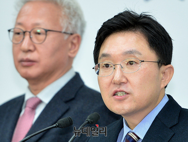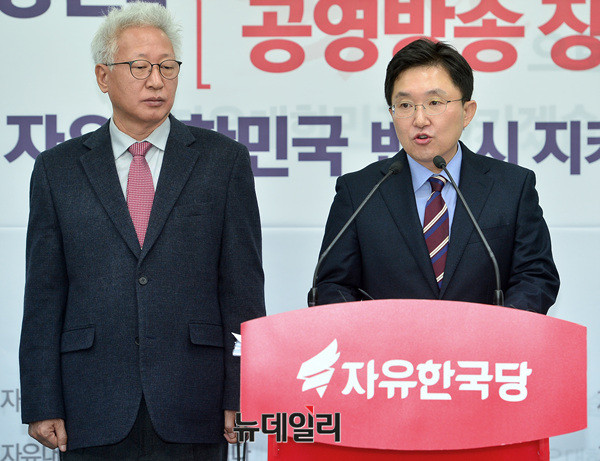 김용태 자유한국당 제2혁신위원장이 28일 오전 서울 여의도 중앙당사에서 임명장 수여 후 기자회견을 하고 있다.
