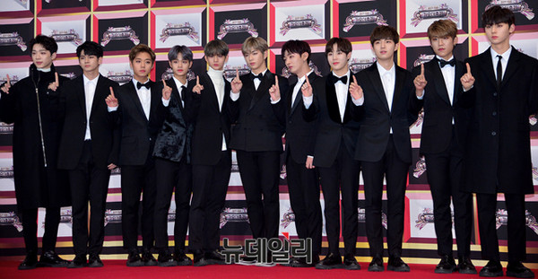 그룹 워너원(Wanna One : 강다니엘, 박지훈, 이대휘, 김재환, 옹성우, 박우진, 라이관린, 윤지성, 황민현, 배진영, 하성운)이 29일 오후 서울 KBS 신관에서 열린 '2017 KBS 가요대축제'에 참석해 포즈를 취하고 있다.