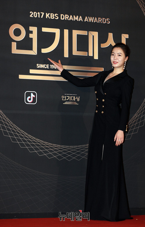 배우 류화영이 31일 오후 서울 여의도 KBS홀 앞 야외광장에서 열린 '2017 KBS 연기대상' 레드카펫 행사에 참석해 포즈를 취하고 있다.