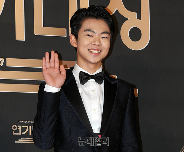 배우 정준원이 31일 오후 서울 여의도 KBS홀 앞 야외광장에서 열린 '2017 KBS 연기대상' 레드카펫 행사에 참석해 포즈를 취하고 있다. 이날 정준원은 청소년 연기상을 수상했다.