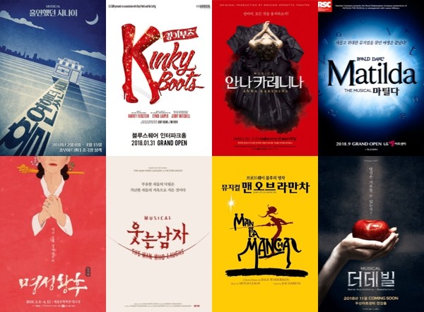 2018년 무술년(戊戌年) 새해가 밝았다. 경기 침체에도 올해 뮤지컬 라인업은 그 어느 때보다 다채롭다. 장기간 숙성된 창작 뮤지컬이 연이어 무대에 오르는데 이어 유명 원작을 바탕으로 한 대작 뮤지컬이 관객들을 기다리고 있다. 새롭게 개막하는 신작부터 반가운 재공연까지 2018 뮤지컬 소식을 전한다.◇ 창작 지원 프로그램 개발 작품, 정식 무대로상반기에 개막을 앞두고 있는 뮤지컬 '카라마조프'(1월 3~14일·아르코예술극장)와 '브라더스 까라마조프'(2월 10일 4월 15일·수현재 씨어터), '레드북'(2월 6일~3월 30일·세종M시어터), '홀연했던 사나이'(2월 6일~4월 15일·충무아트센터 중극장 블랙)는 창작지원 프로그램을 통해 먼저 관객에게 선보였다.'카라마조프'는 2017년 공연예술창작산실 '올해의 신작'과 2016년 CJ문화재단의 '스테이지업' 공모전에 선정돼 리딩공연을 올린 바 있다. '브라더스 까라마조프'는 2016년 수현재 작가데뷔 프로그램 '통통통 시즌1'을 통해 발굴, 지난해 2월과 10월 쇼케이스를 거쳐 완성도를 높였다.두 작품 모두 러시아의 대문호 표도르 도스토옙스키(1821~1881)의 유작 '카라마조프가의 형제들'을 소재로 한다. 아버지의 살인사건을 둘러싼 형제들을 중심으로 다양한 인물 군상과 무수한 에피소드를 담은 방대한 원작을 영리하게 집약했다.'레드북'은 '2016 공연예술 창작 산실 우수 신작' 선정작으로 '여신님이 보고계셔'의 한정석 작가와 이선영 작곡가 콤비가 의기투합한 작품이다. 가장 보수적인 19세기 영국 빅토리아 시대를 배경으로 '슬플 때마다 야한 상상을 한다'는 엉뚱하지만 당당한 안나와 고지식한 변호사 청년 브라운이 펼치는 로맨틱 코미디다.'홀연했던 사나이'는 2013년 연희단거리패가 제작한 동명의 연극이 원작이다. 김태형 연출을 필두로 오세혁 작가와 다미로 작곡가가 합심해 뮤지컬로 재탄생시켰다. 2013년 뮤지컬 전문 팟캐스트 '자리주삼'이 진행한 창작프로젝트에서 첫 선을 보였으며, 창작산실에서 시연회를 가졌다.◇ 고전부터 추리소설까지, 원작과 또 다른 매력으로올해는 '용의자 X의 헌신'(5월 대명문화공장 개막 예정), '웃는 남자'(7월 6일~8월 26일·예술의전당 오페라극장) 등 고전 명작부터 현대까지 유명 소설을 원작으로 한 창작 뮤지컬이 관객들을 찾아온다.2016년 신규 콘텐츠 개발 지원 프로젝트 '만나다-동행'에서 리딩 공연을 가졌던 뮤지컬 '용의자 X의 헌신'은 일본 작가 히가시노 게이고의 동명 소설이 원작이다. 지독히 왜곡된 사랑으로 인해 풀 수 없는 문제를 만드는 수학자와 그 문제를 풀어야만 하는 물리학자, 이 두 친구 사이의 두뇌게임을 다룬다. 나루이 유타카의 연극 대본을 토대로 개발됐으며 정영 작가, 원미솔 작곡가, 정태영 연출 등이 참여한다.EMK뮤지컬컴퍼니가 '마타하리'에 이어 세계 무대를 겨냥해 제작한 두 번째 창작 뮤지컬 '웃는 남자'가 베일을 벗는다. '웃는 남자'는 프랑스의 대문호 빅토르 위고의 동명소설(1869)를 무대로 옮긴 작품이다. 시대의 욕망에 희생돼 기형적인 얼굴을 가진 광대로 살아야 했던 그윈플렌의 비극적인 운명을 통해 뿌리 깊은 귀족제도와 부패한 왕정을 신랄하게 비판한다.이 외에도 보리스 파스테르나크의 동명 장편소설을 원작으로 한 뮤지컬 '닥터 지바고'(2월말~5월 예정·개막샤롯데씨어터)와 세르반테스의 소설 '돈키호테'가 원작인 '맨오브라만차'(4월 개막·블루스퀘어)를 비롯해 '프랑켄슈타인'(6월 개막·블루스퀘어), '팬텀'(11월~2019년 2월·충무아트센터 대극장) 등이 공연을 준비하고 있다.◇ 설레는 첫 만남, 반갑다! 라이선스 뮤지컬국내 주요 뮤지컬 제작사 가운데 올해 가장 눈에 띄는 라인업을 발표한 곳은 마스트엔터테인먼트와 신시컴퍼니다. 두 제작사 모두 새롭게 선보일 라이선스 뮤지컬로 각각 '안나 카레니나'(1월 10일~2월 25일·예술의전당 오페라극장)와 '마틸다'(9월 9일~2019년 2월 10일·LG아트센터)를 처음 무대에 올린다.러시아의 대문호 톨스토이(1828~1910)의 3대 걸작 중 하나인 '안나 카레니나'가 전 세계 최초로 한국에서 라이선스 초연된다. 지난해 창립 90주년을 맞는 모스크바 오페레타 씨어터의 세 번째 흥행작이다. 작품은 1880년대 사랑 없는 결혼을 택한 귀부인 안나와 젊은 백작 브론스키의 비극적인 사랑을 담는다. 배우 옥주현과 정선아가 타이틀롤을 맡는다.신시컴퍼니가 창단 30주년을 기념해 판타지 뮤지컬 '위키드', '라이온 킹'의 계보를 잇는 '마틸다'를 아시아·비영어권 최초로 공연한다. 로얄 셰익스피어 컴퍼니가 제작한 '마틸다'는 2010년 영국 코트야드 극장에서 초연된 이후 지금까지 웨스트엔드에서 가장 사랑 받는 뮤지컬로 손꼽힌다.'마틸다'는 영화 '찰리와 초콜릿 공장'으로 친숙한 작가 로알드 달의 작품이 원작이다. 천재소녀 마틸다가 물질주의에 찌들어 TV를 좋아하고 책을 증오하는 부모와 오빠, 아이들을 싫어하는 교장에게 맞서는 이야기를 유쾌하게 그린다.◇ 봐도 봐도 즐거운 대형 흥행작의 귀환뮤지컬계의 스테디셀러 '킹키부츠'(1월 31일~4월 1일·블루스퀘어 인터파크홀), '명성황후'(3월 6~4월 15일·세종문화회관 대극장), '시카고'(5월 22일~8월 5일·디큐브아트센터), '