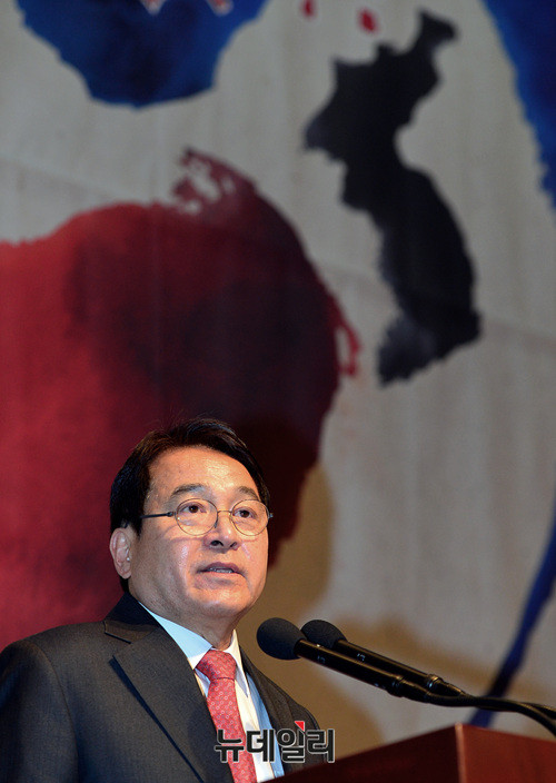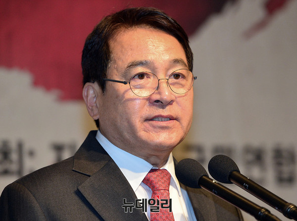 심재철 국회부의장이 3일 오후 한국프레스센터에서 열린 자유민주국민엽한 신년 하례식에 참석해 축사를 하고 있다. 이날 행사에는 노재봉 전 국무총리, 김계춘 원로신부 등이 참석했다.