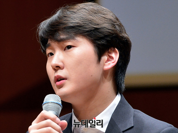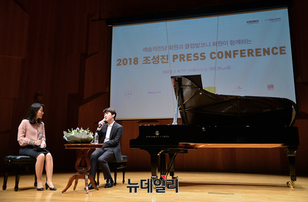 피아니스트 조성진이 4일 오전 예술의전당 IBK챔버홀에서 열린 프레스 컨퍼런스에 참석해 인사말을 하고 있다.