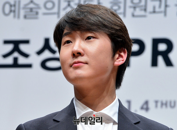피아니스트 조성진이 4일 오전 예술의전당 IBK챔버홀에서 열린 프레스 컨퍼런스에 참석해 포토타임을 갖고 있다.