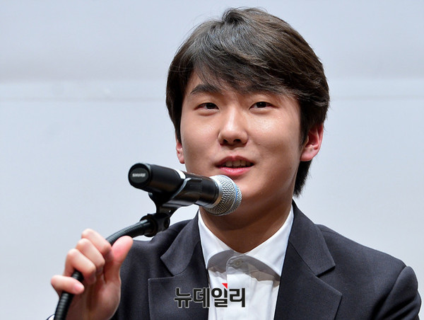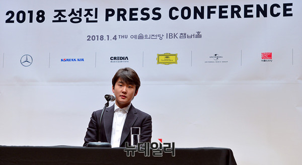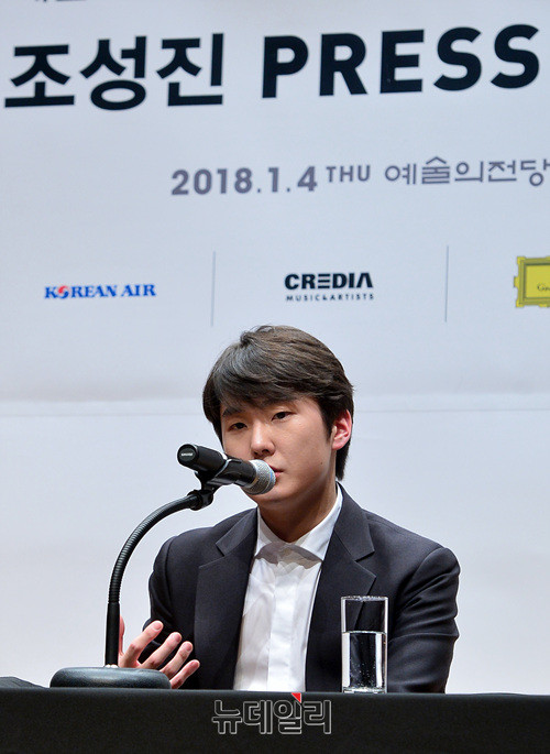 피아니스트 조성진이 4일 오전 예술의전당 IBK챔버홀에서 열린 프레스 컨퍼런스에 참석해 질문에 답하고 있다.