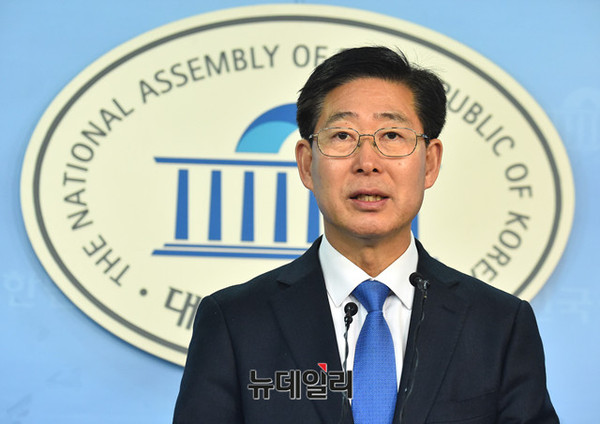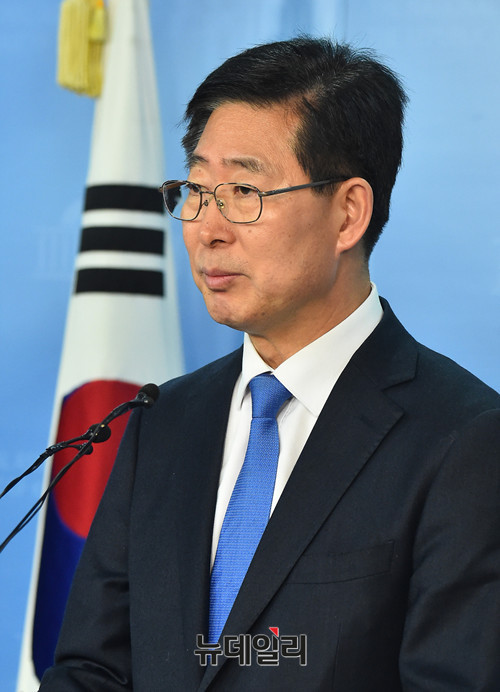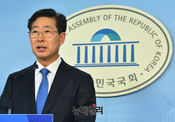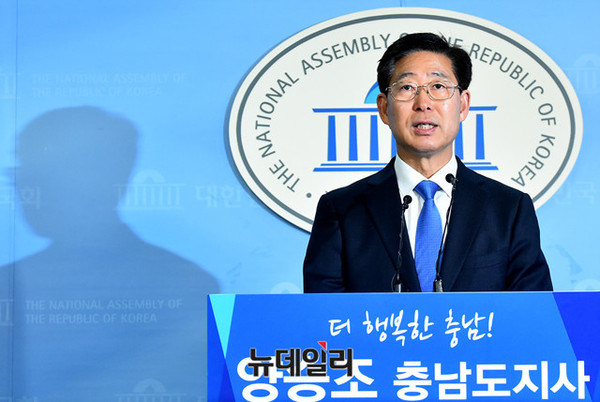 양승조 더불어민주당 의원이 4일 오후 국회 정론관에서 충남도지사 출마선언 기자회견을 하고 있다.