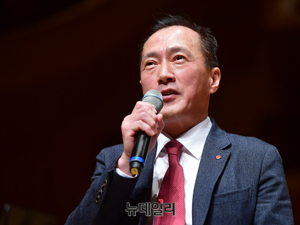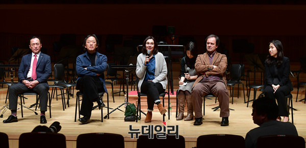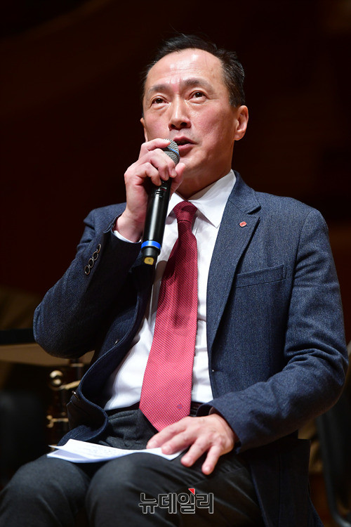 한광규 롯데문화재단 대표가 5일 오후 서울 송파구 롯데콘서트홀에서 열린 원 코리아 유스 오케스트라 창단 기자간담회에서 인사말을 하고 있다.