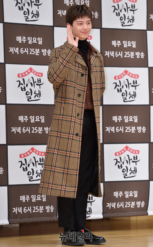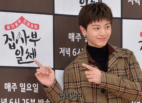 가수 육성재가 5일 오전 서울 목동 SBS에서 열린 예능프로그램 '집사부일체' 기자간담회에 참석해 포토타임을 갖고 있다.