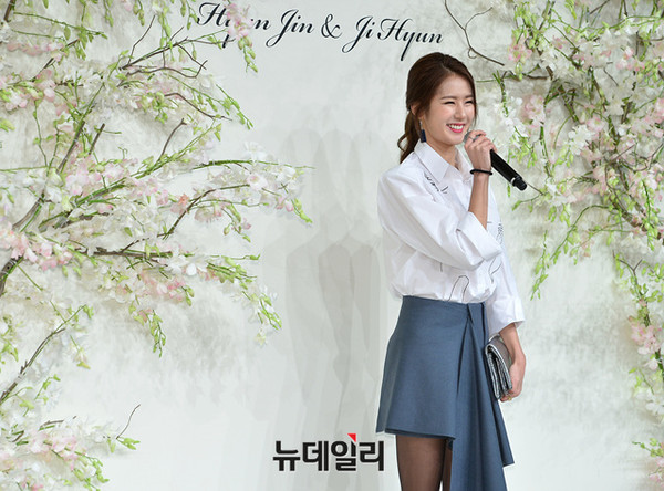 치어리더 박기량이 5일 오후 서울 신라호텔에서 열린 프로야구 LA 다저스 류현진 선수와 아나운서 배지현의 결혼식에 참석해 포즈를 취하고 있다. 두 사람은 2년 열애 끝에 지난해 11월 결혼을 발표했다. 식은 비공개로 진행된다.