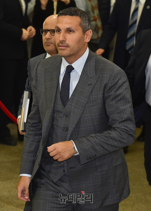 칼둔 칼리파 알 무바라크 UAE 아부다비 행정청장이 8일 오후 정세균 국회의장과의 면담을 위해 국회로 들어서고 있다.