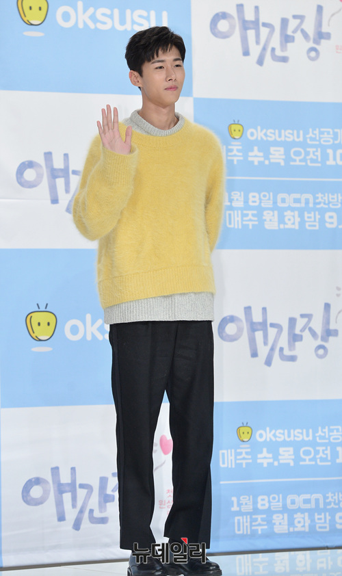 배우 서지훈이 8일 오후 서울 영등포 타임스퀘어에서 열린 OCN 웹드라마 '애간장' 제작발표회에 참석해 포즈를 취하고 있다. 서지훈은 사랑이 서툰 어린 강신우 역을 맡았다.