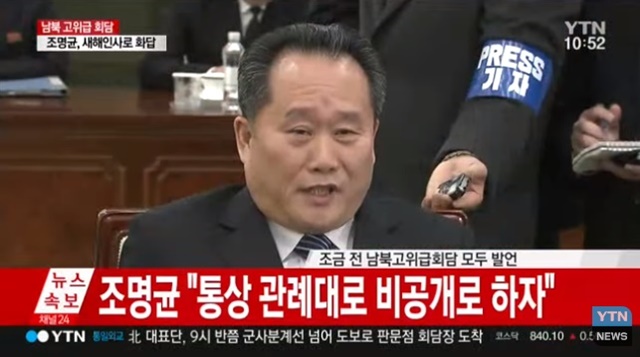 남북 고위급 회담이 진행되고 있는 가운데, 북측 대표로 참석한 리선권이 남측에 공개 회담으로 전환하자고 제시했다.앞서 남측 대표단으로 참석한 조명균 통일부 장관은 9일 오전 경기도 파주시에 위치한 평화의 집에서 본격적인 회담에 앞서 "패럴림픽 동계 올림픽 북측 참가가 이슈다. 이번 겨울이 춥고 눈도 많이 내려서 올림픽을 치루는데 아주 좋은 조건이 됐다"고 입을 열었다.이어 조 장관은 "여기에 많은 나라에서 귀한 손님들이 오시는데, 특별히 우리 북측 대표단이 오시기 때문에 평창 동계올림픽 패럴림픽이 평화축제로 잘 치러질 것이라고 기대한다"고 덧붙였다.조 장관은 '시작이 반이다'라는 속담을 언급하면서 "저희가 올해 남북관계 단절 속에서 회담이 시작됐으나 '첫 시작이 반이다'라는 생각으로 끈기를 가지고 회의가 진행되길 바란다"고 밝혔다.또 조 장관은 "'첫술에 배부르랴'라는 말도 있다"면서 "그런 것도 감안해서 서두르지 않고 하나하나 풀어나가면 되겠다는 마음을 가지고 있다"고 설명했다.