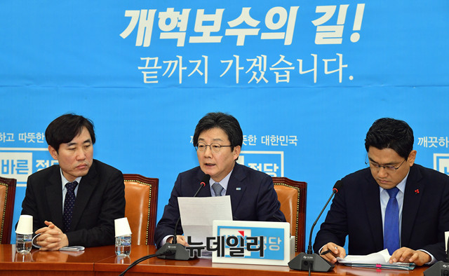유승민 바른정당 대표가 9일 오전 국회 바른정당회의실에서 열린 최고위원-국회의원 연석회의에 참석해 모두발언하고 있다.