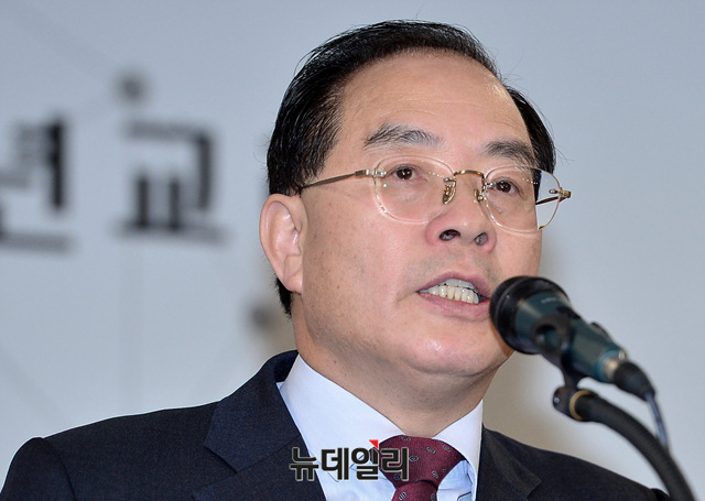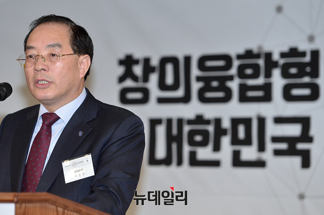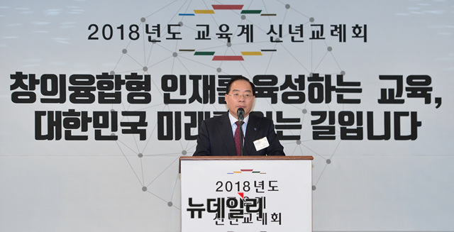 하윤수 한국교원단체총연합회장이 9일 오전 서울 세종문화회관 세종홀에서 열린 '2018년도 교육계 신년교례회'에 참석해 인사말을 하고 있다.