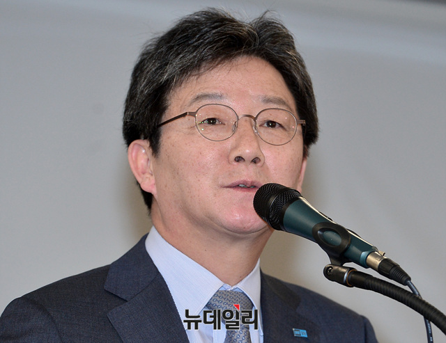 유승민 바른정당 대표가 9일 오전 서울 세종문화회관 세종홀에서 열린 '2018년도 교육계 신년교례회'에 참석해 신년사를 하고 있다.