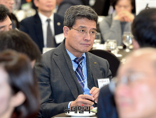 장해랑 EBS 사장이 9일 오전 서울 세종문화회관 세종홀에서 열린 '2018년도 교육계 신년교례회'에 참석해 박수를 치고 있다.