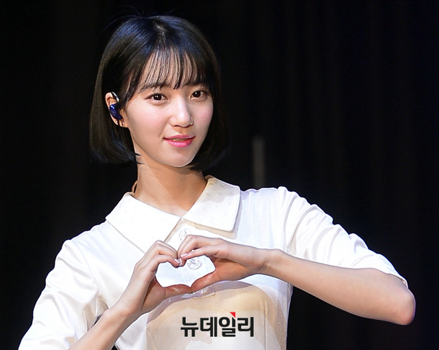 그룹 오마이걸(OH MY GIRL : 효정, 미미, 유아, 승희, 지호, 비니, 아린) 비니가 9일 오후 서울 중구 메사홀에서 열린 다섯 번째 미니앨범 '비밀정원' 발매 기념 쇼케이스에 참석해 포즈를 취하고 있다. 이번 앨범은 멤버 진이의 탈퇴 후 첫 번째 컴백이다.타이틀곡 '비밀정원'을 포함 총 5곡이 수록됐다. 비밀정원은 자신의 꿈을 담은 비밀정원을 키워나가는 소녀들의 이야기를 가사에 담았다. 음원은 오늘(8일) 오후 6시에 공개될 예정이다.