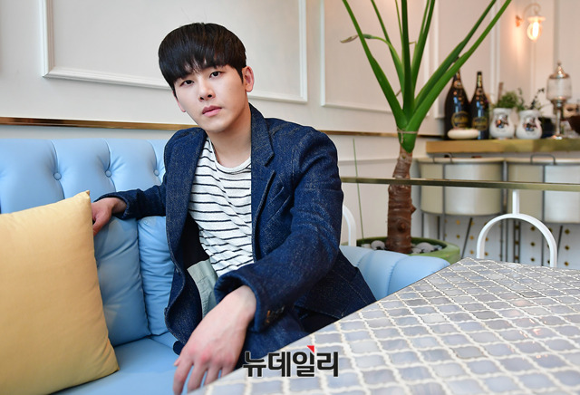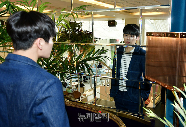 뮤지컬 '모래시계'에서 경호원 재희 역을 맡은 배우 이호원이 9일 오후 서울 강남구의 한 카페에서 진행된 뉴데일리와의 인터뷰에 앞서 포토타임을 갖고 있다.