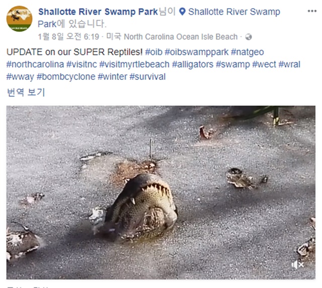 美샬럿 공원, SNS통해 한파 속에서 생존하는 흥미로운 악어 사진 공개