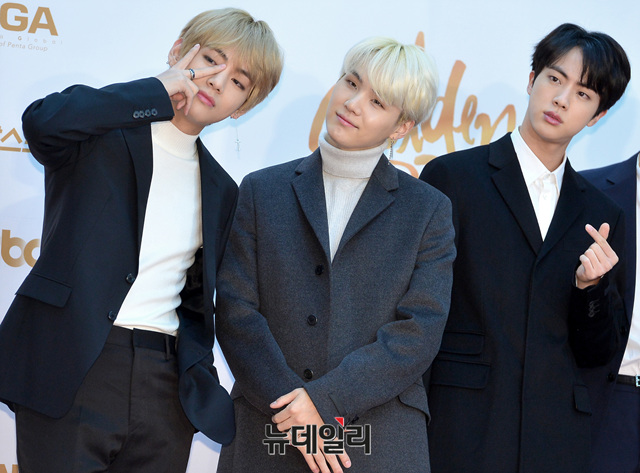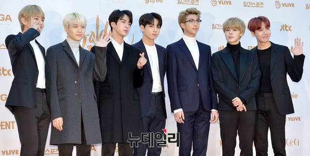 그룹 방탄소년단(RM, 슈가, 진, 제이홉, 지민, 뷔, 정국)이 10일 오후 일산 킨텍스에서 열린 '2018 골든디스크 어워즈(GOLDEN DISK AWARDS)'에 참석해 포즈를 취하고 있다.