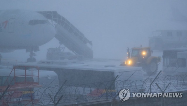 제주공항이 폭설로 인해 임시 운항중단을 결정했다.11일 연합뉴스에 따르면 제주공항이 이틀째 내린 폭설로 임시 운항 중단을 결정하고 제설작업에 나선 것으로 전해졌다.작업은 이날 오전 9시45분까지 진행될 예정었으나, 오전 11시까지로 연장됐다. 공항측은 모든 여객선 운행을 통제하고 활주로도 폐쇄했다.앞서 기상청은 이날 오전 6시 기준 제주 남부 앞바다를 포함해 전 해상에 풍랑주의보를 내렸다.특히 제주도에는 영하 10도 아래로 떨어지는 강추위와 최대 33cm 이상의 눈이 내리면서 제주 전역에 비상이 걸렸다.사고 소식도 속출했다. 지난 10일 밤 11시께 제주 서귀포시 색달동에서는 한 승용차가 공항 리무진 버스 두 대를 들이받았다.또 같은날 오전 9시30분께엔 제주 서귀포시 안덕면 캐슬렉스 골프장 인근 도로에서 차량들이 잇따라 추돌하는 사고가 발생하면서 총 15대가 피해를 입고 3명이 병원으로 이송됐다.오후 5시35분에는 제주시 용담2동 렌터카 천막 구조물이 강풍에 날아가 시민들을 위협하기도 했다.기상청은 찬 대륙성고기압의 영향으로 당분간 기온이 크게 떨어지고 찬바람이 강하게 불겠으며, 도로에는 눈이 쌓이거나 얼어붙은 구간이 많을 것"이라면서 시설물 및 건강에 유의해야 한다고 전했다.
