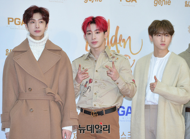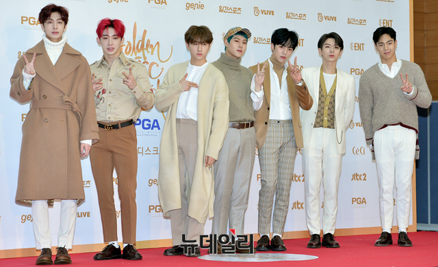 그룹 몬스타엑스(MONSTA X : 주헌, 셔누, 기현, 형원, 민혁, 원호, 아이엠)가 11일 오후 일산 킨텍스에서 열린 '2018 골든디스크 어워즈(GOLDEN DISK AWARDS)'에 참석해 포즈를 취하고 있다.