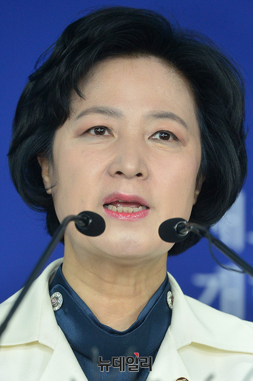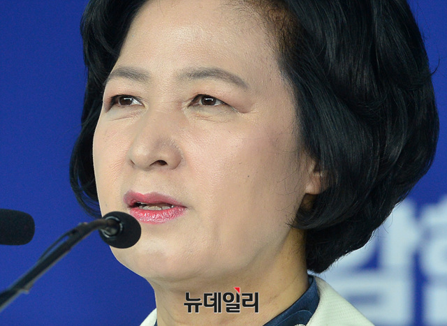 추미애 더불어민주당 대표가 16일 오전 서울 여의도 중앙당사에서 신년 기자회견을 하고 있다.