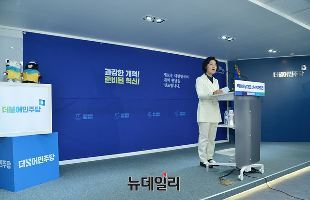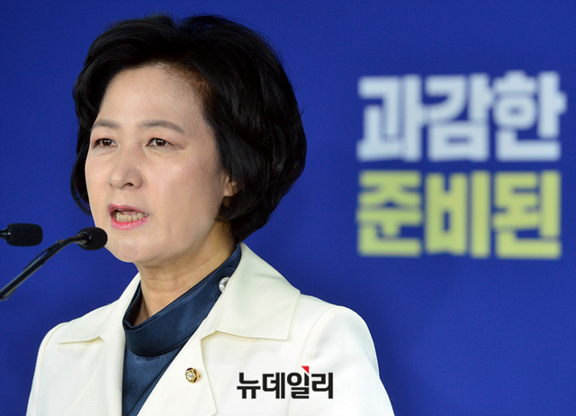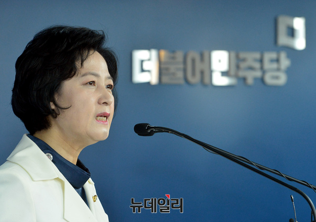 추미애 더불어민주당 대표가 16일 오전 서울 여의도 중앙당사에서 열린 신년 기자회견에 참석해 질문에 답하고 있다.