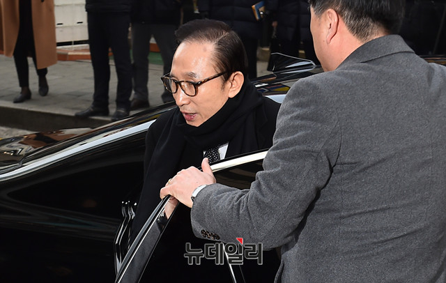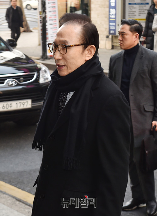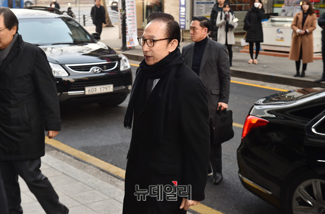 이명박 전 대통령이 17일 오후 서울 강남구 삼성동 사무실에서 열릴 예정인 검찰의 특수활동비 수사 관련 입장을 발표 기자회견을 위해 사무실로 향하고 있다.
