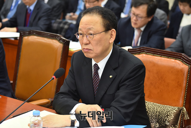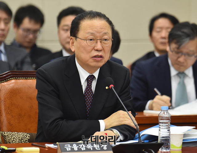 최흥식 금감원장이 18일 오전 국회 정무위에서 열린 가상화폐 관련 긴급현안질의에 출석해 의원들의 질문에 답하고 있다.