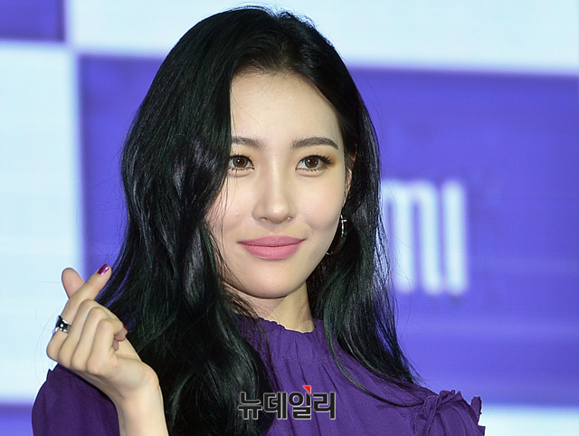 가수 선미가 18일 오후 서울 강남구 라마다호텔에서 열린 싱글 앨범 '주인공(Heroine)' 발매 기념 기자간담회에 참석해 포즈를 취하고 있다.