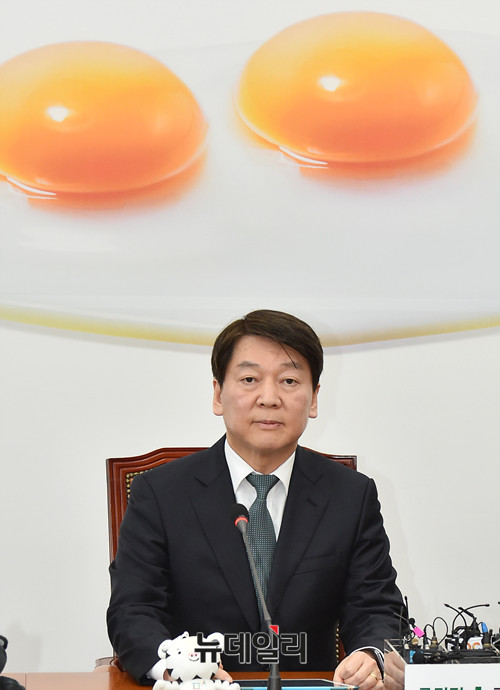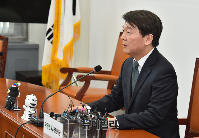 안철수 국민의당 대표가 23일 오후 국회 국민의당 대표실에서 기자회견을 열고 "창당을 하면 당적을 정리하는 게 당연하다"며 "통합반대파 의원들은 이번 주말까지 거취를 결정하라"고 최후통첩을 하고 있다.