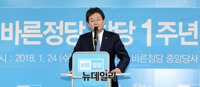 유승민 바른정당 대표가 24일 오전 여의도 중앙당사에서 열린 창당 1주년 기념식에 참석해 발언 하고 있다.